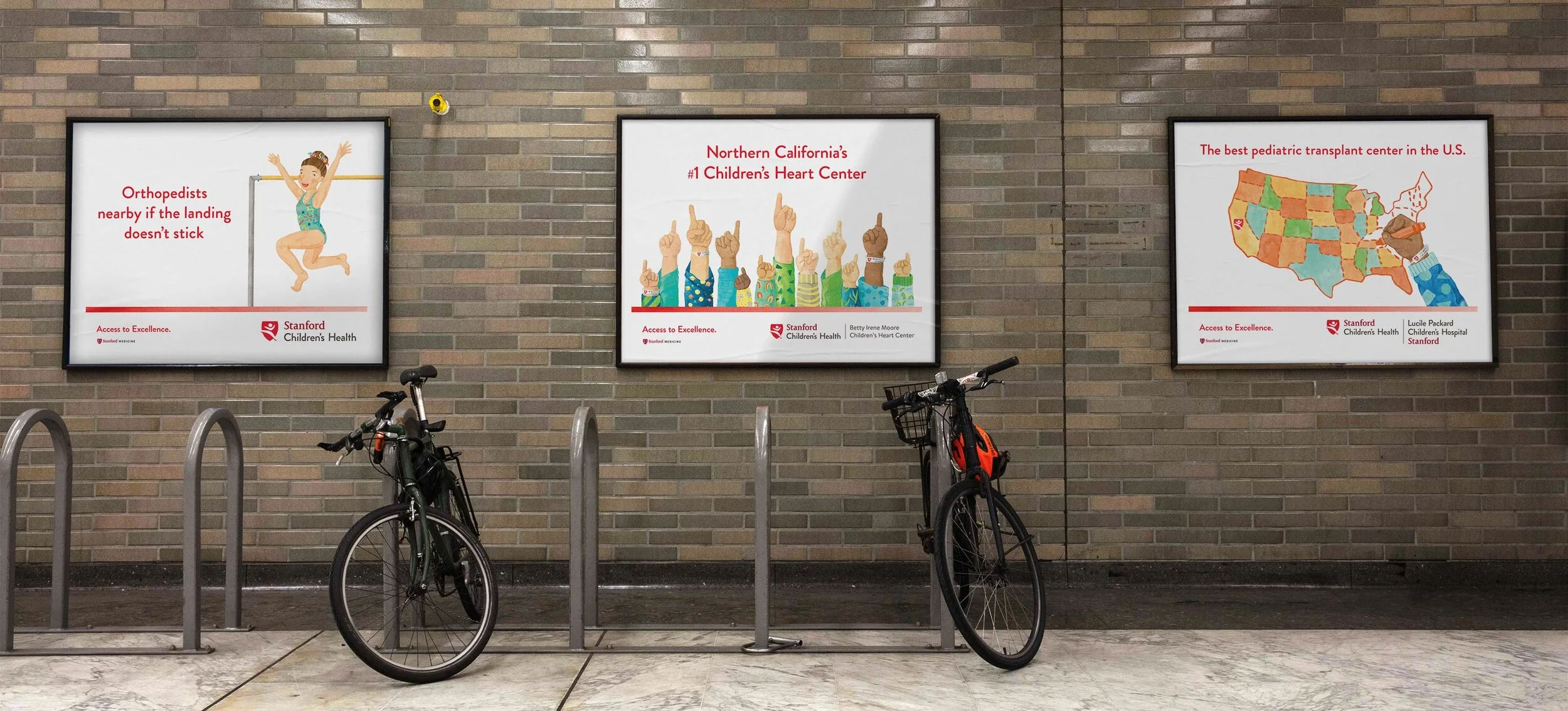 The first goal of this campaign for Stanford Children’s Health was to give them a fresh look and message to stand out amongst the often bland and homogenous advertising and marketing in the healthcare space. The second goal of the campaign was to inform people about the Stanford Children’s Health network. Stanford pediatricians and specialists are located all across the Bay Area treating anything from the everyday to the extraordinary, but we found most parents were unaware that Stanford-level care was available to them outside of the main hospital.